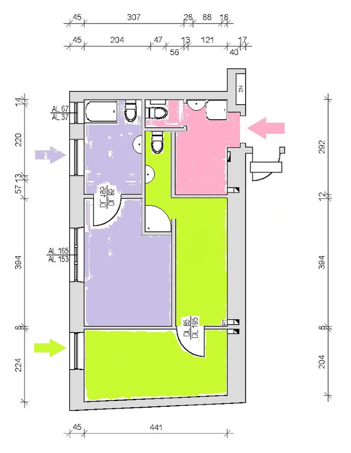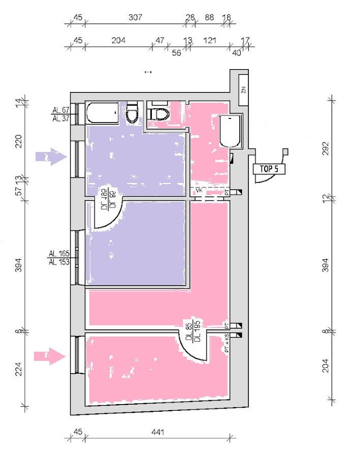 Längenangaben am Rand stimmen nicht immer, weil ich einige Wände